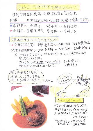 3月は毎週、日曜日と14日、20日、30日をお休みさせて頂きます。